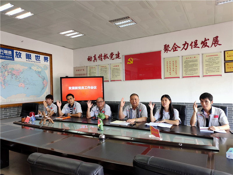 7月1日,為紀(jì)念中國(guó)共產(chǎn)黨建黨98周年,繼承和發(fā)揚(yáng)黨的光榮傳統(tǒng),進(jìn)一步發(fā)揮黨建引領(lǐng)作用和黨員的先鋒模范作用,以黨員帶動(dòng)群眾,中國(guó)共產(chǎn)黨廣東匯興精工智造股份有限公司支部委員會(huì)(簡(jiǎn)稱:匯興智造黨支部)組織開(kāi)展“七一”黨建主題活動(dòng)。匯興智造黨支部在黨員活動(dòng)室召開(kāi)“發(fā)展新黨員工作會(huì)議”,討論發(fā)展袁侃和蔣明華兩位同志為入黨積極分子,黨支部成員悉數(shù)參加會(huì)議。