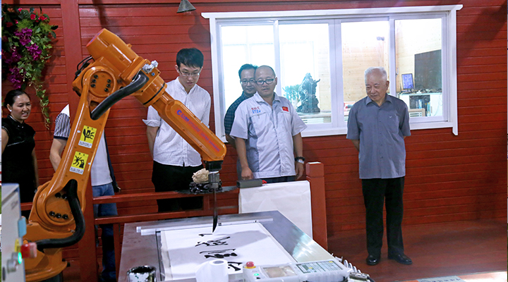 中國工程院孫玉院士一行參觀機器人寫書法
