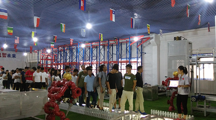 在參觀的過程中文化大使盧錦靚為學生們詳細的介紹了體驗館的理念以及傳統生產制造車間是如何將物聯網、傳感技術、大數據、工業機器人等技術融入到生產當中變成使之升級成為智能自動化車間的。師生們對此都表現出非常濃厚的興趣,并提問咨詢,盧錦靚文化大使也為同學們一一解答。