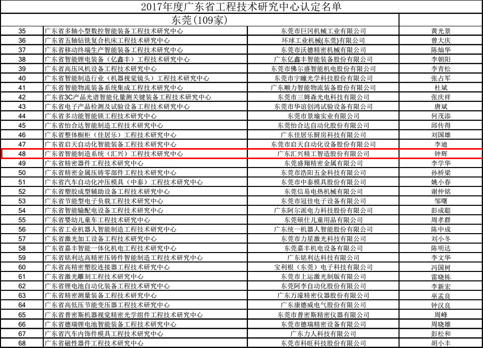 2017年9月25日,匯興智造設立的 “廣東省智能制造系統(匯興)工程技術研究中心”被廣東省科技廳認定為“2017年......